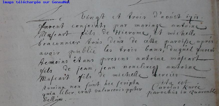 Acte de mariage (1712)