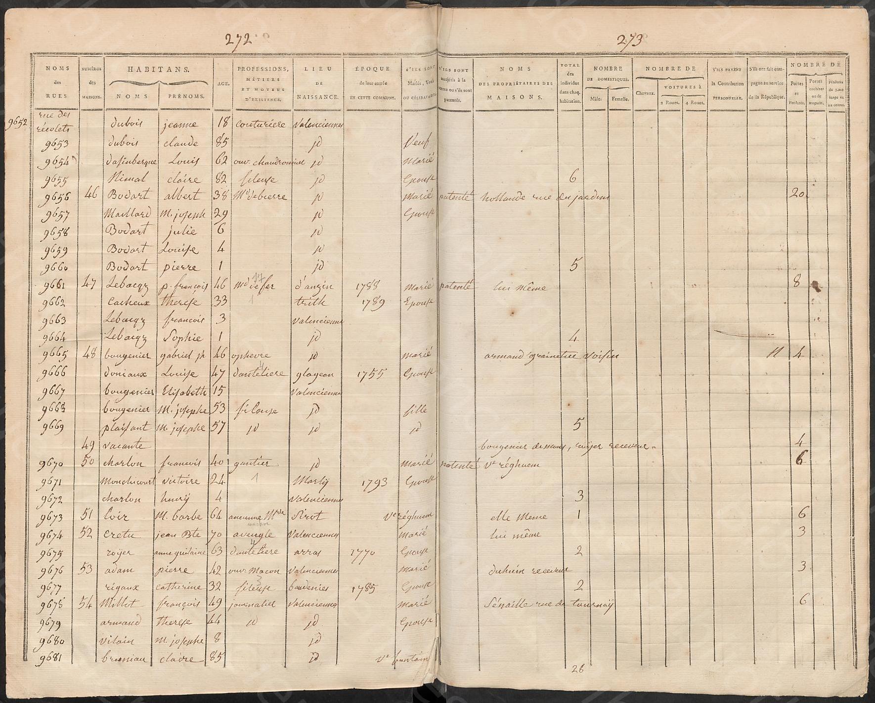 Recensement de la population de Valenciennes (an VII)